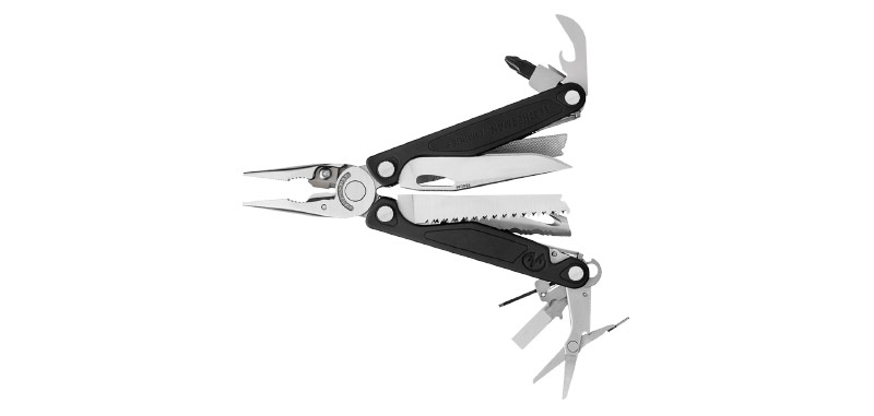 FeaturesSteel: 154CMBlade length (mm): 74Blade colour: WhiteHandle (finish): AluminiumBlade profile: Clip PointHandle colour: BlackCarrying case: Cordura-type sheathSelf-locking tools.Comes with 8 reversible bits.Needle-nose pliers.Regular pliers.Replaceable hard wire cutter.Replaceable wire cutter.Wire stripper.CM154 knife.HC420 serrated knife.Saw.Spring-loaded scissors.Rope cutter hook.Ruler (19 cm).Can opener.Bottle opener.Wood and metal file.Diamond file.Large bit adapter.Small bit adapter.Medium flat screwdriver.
