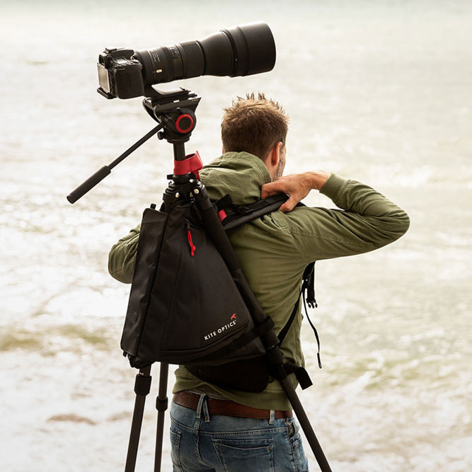 Lo zaino KITE VIATO si attacca facilmente a qualsiasi treppiede e permette di portare il cannocchiale e tutta l'attrezzatura sulla schiena, fornendo al tempo stesso un buon spazio di stoccaggio e un supporto per lo scaffale.